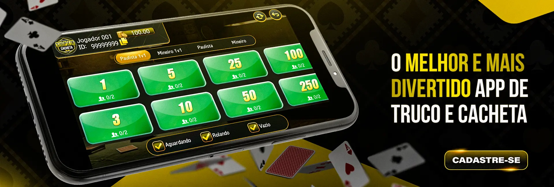 Com jogos a partir de R$ 1,00 o Super Cacheta é o aplicativo mais inclusivo.